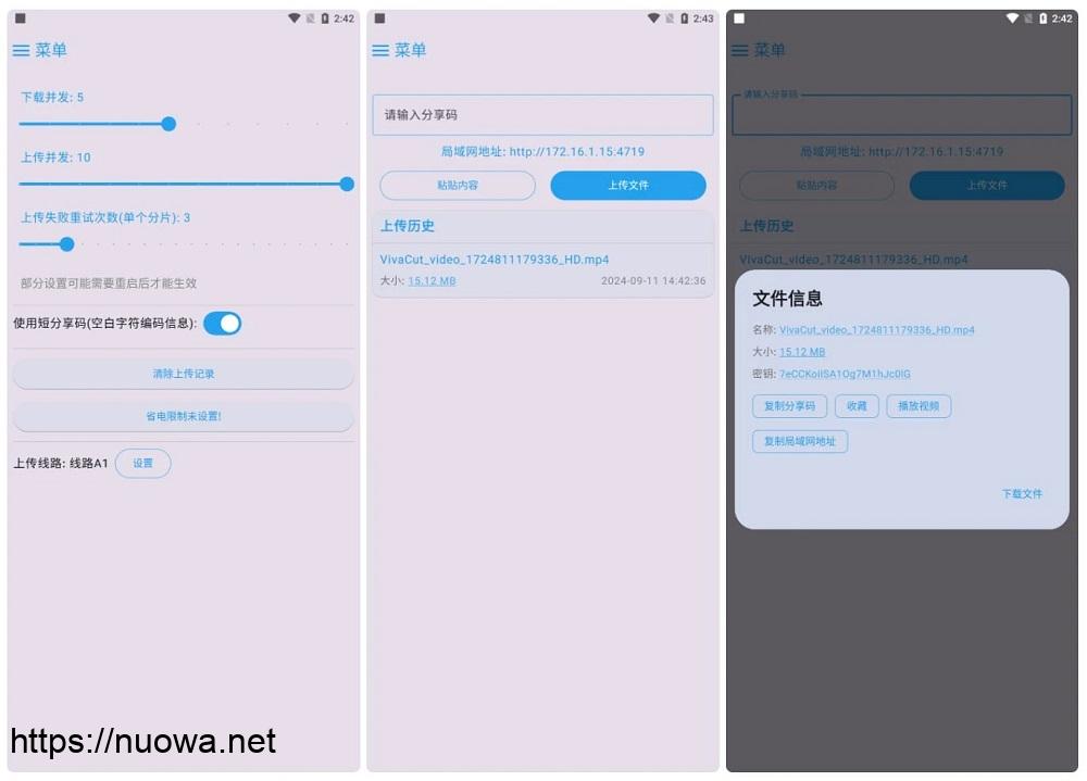 MixFile是一款功能强大的安卓APP,让您轻松上传和分享文件。文件在上传过程中会自动加密,无需登录或注册,上传和下载速度不限,最大支持单个文件达400G。加密时,系统会生成随机密钥,上传完成后,密钥、文件地址和文件大小等信息会包含在分享码中。您还可以在线播放加密的视频,只需将分享码发送给他人,即可实现文件分享。高度的安全保障意味着即使服务器也无法知晓您的文件内容,前提是您不泄露分享码。在局域网内,只要有一台设备安装了MixFile,其他设备均可通过网页端上传、下载和播放加密文件,为您的文件管理和共享带来极大便利。