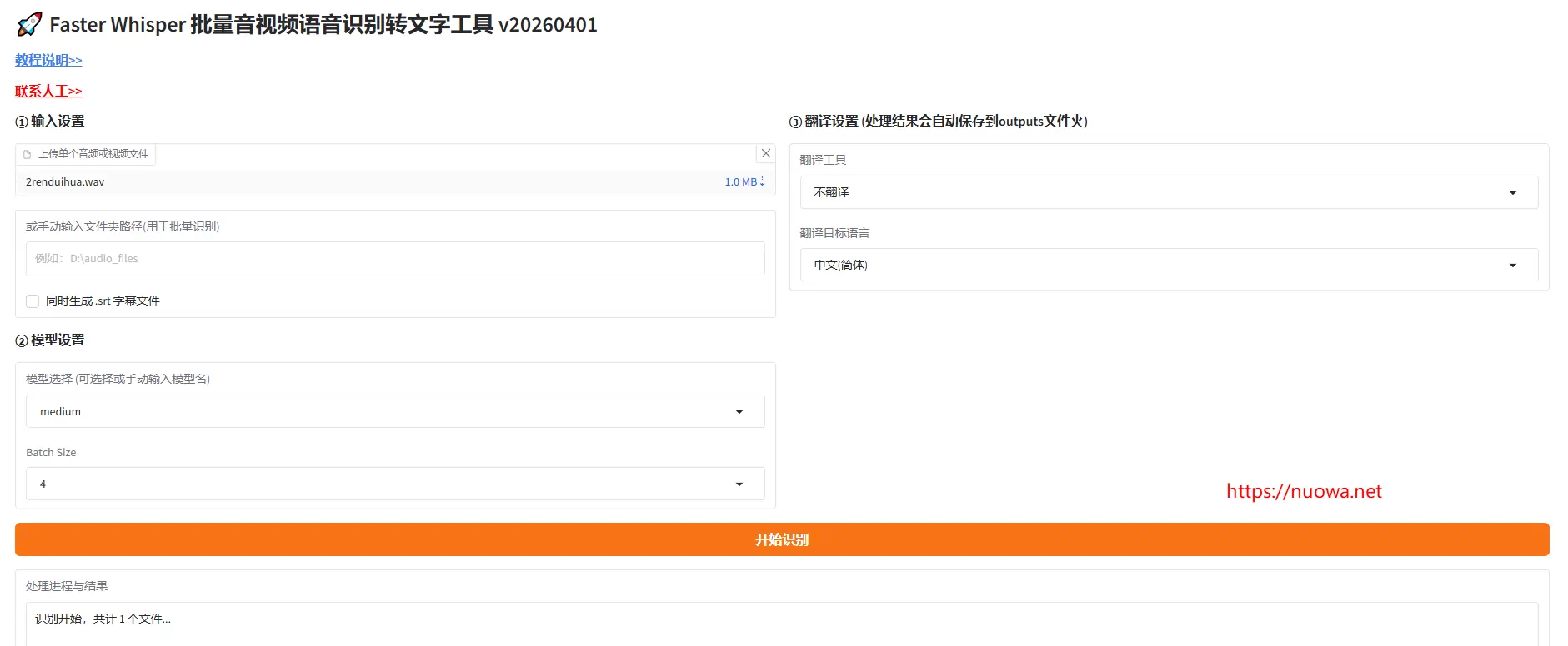 免费语音识别转文字软件faster-whisper整合包下载,音频视频文字提取工具