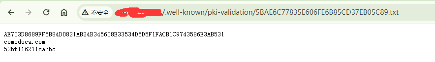 启用python的http服务,在浏览器里打开http://IP地址/.well-known/pki-validation/5BAE6C77835E606FE6B85CD37EB05C89.txt