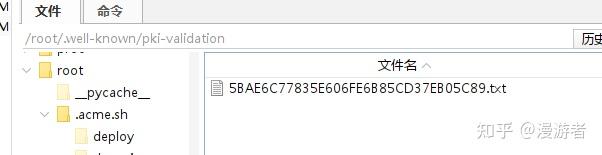然后在服务器默认访问文件夹下,如root下创建文件夹路径/.well-known/pki-validation/,将txt文件上传到这个路径文件夹内