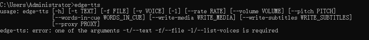 输出successfully就表示安装完成了,可以输入edge-tts试试看看有没有输出相关信息。