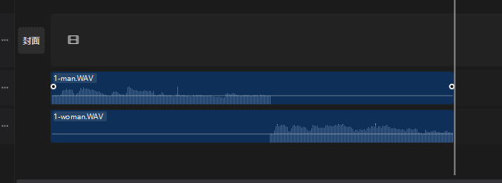 在进行两人对话合成时,两人的音频时长需要一致,一个人说话时,另一个人的音轨可以设为静音,如下图所示。