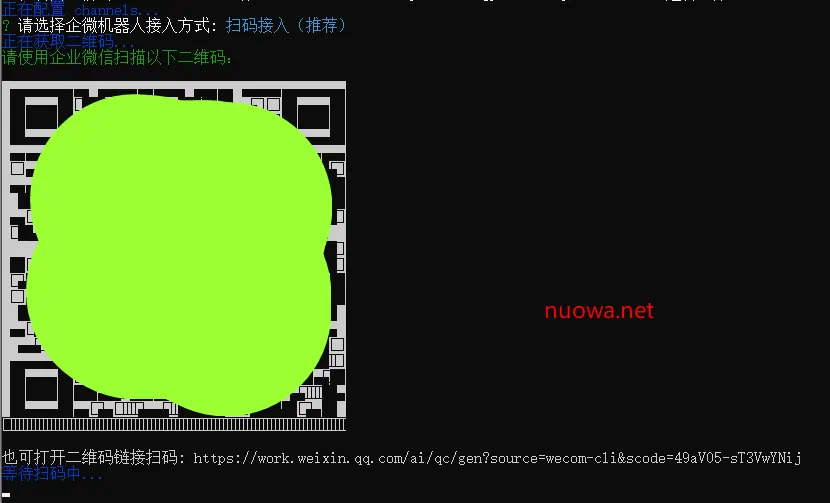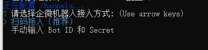 等到提示请选择企微机器人接入方式时,选择扫码接入